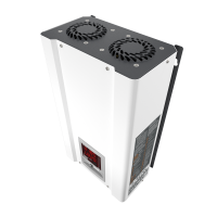 Тороидальный силовой автотрансформатор с алюминиевыми обмотками обладает достаточными характеристиками для работы на номинальных параметрах и малошумен в работе. Охлаждение стабилизатора возложено на эффективные вентиляторы и алюминиевый радиатор силового модуля, что является стандартным решением у большинства моделей. Контролируемые параметры отображаются на двойном цифровом сегментном четырехразрядном индикаторе и выводятся по очереди при нажатии на кнопку управления режимами индикации на лицевой панели стабилизатора напряжения. Входное и выходное напряжение, ток, мощность, температуры, частота сети, коды ошибок при аварийных ситуациях - эти и прочие параметры будут давать подробную информацию о процессе стабилизации.